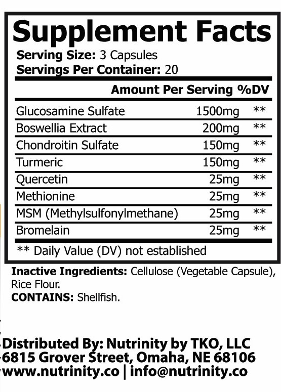 Ultra Joint Flex by Nutrinity contains Glucosamine and Chondroitin. Glucosamine has been used to help joint support and mobility. Chondroitin is a compound that has been shown to help form hylaine cartilage, a connective tissue that cushions the joints. The two of them, when paired together, help support healthy joints and may help reduce the effects of daily wear and tear. Ultra Joint Flex also contains Turmeric, which has long been used as an anti-inflammatory.